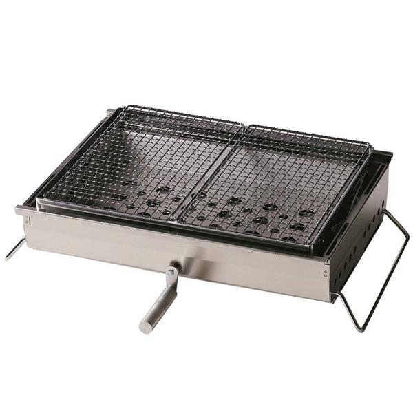 本体にステンレスとセラッミクを使用している耐久性に優れた国産の卓上バーベキューグリルです。セラミックと独自のV字形状で少ない炭でも効率よく遠赤外線を発生させ、食材をふっくらと焼きあげます。本体はA4サイズに収納でき、コンパクトなうえケースに入れれば清潔に持ち運びができます。水洗いが容易にできるよう改良されています。